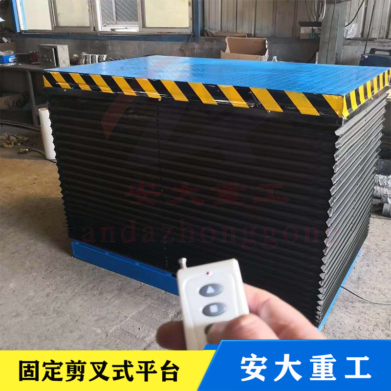 固定式升降平臺采用鋼架結構或高強度鋼板結構,承載能力由0.1至100噸不等,產品尺寸及設備尺寸可根據用戶不同需求定制。操作方式可分為上下控制和地面單人控制,也可點升降、多層控制。
