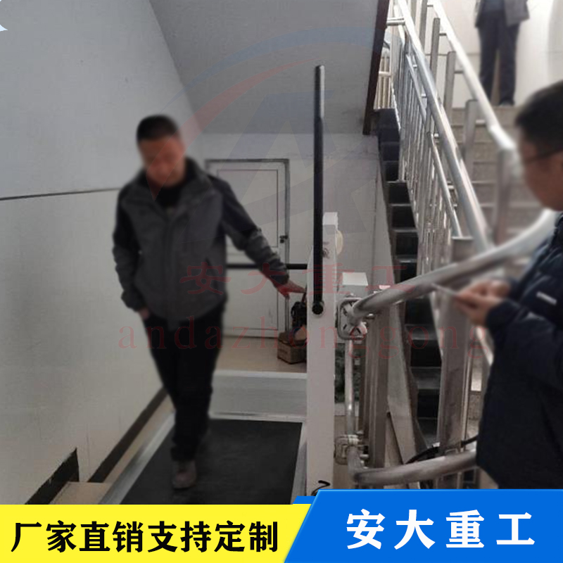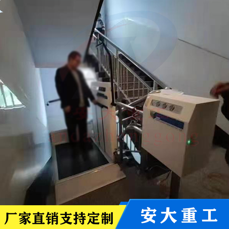 斜掛式無障礙升降平合按其運行方向分曲線型和直線型二種。直線型多采用齒輪齒條式驅動機構,沿樓梯做上升和下降,只能作直線運行不能轉彎,傾斜角一般不大于35度